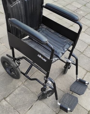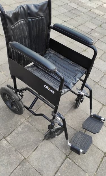 Vežimėlis mažais ratais su lydinčio žmogaus pagalba. Suglaudžiamas rėmas. Naudotojo maksimalus svoris 90 kg.