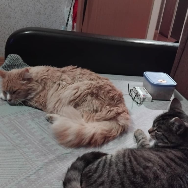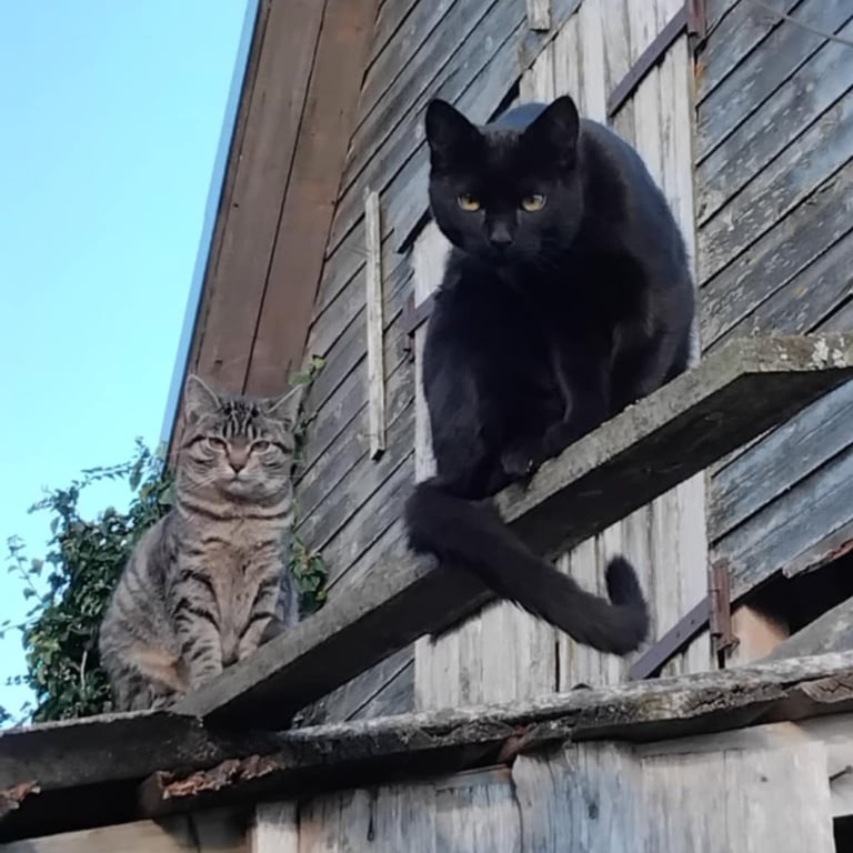Tai tik dalis linksmų nedarbių, kuriuos iškrečia mūsų augintiniai, bet kasdien jie pasitinka mus meliai uostinėdami, murkdami, "kalbėdami", vizgindami uodegėles, grybštelėdami švelniai į pirštą už tai, kad vieniems teko karaliauti visą darbo dieną. Jie moka paprašyti, gal tiksliau išsireikalauti savo papapildomų skanumynų, kad pasikeltų sau nuotaiką ir galėtų pasiautėti po namus vakarais. Nors daugelyje visokių video katinas ir šuo ne itin draugiški, bet mūsų praktika rodo, kad jie moka lakti vandenėlį iš vieno dubenėlio (gal pas kaimyną ir skaniau - ką čia gali žinoti), abu telpa prie šeimininko, labai atsakingai abu slaugo sergančius namiškius arba prižiūri mažylius.
