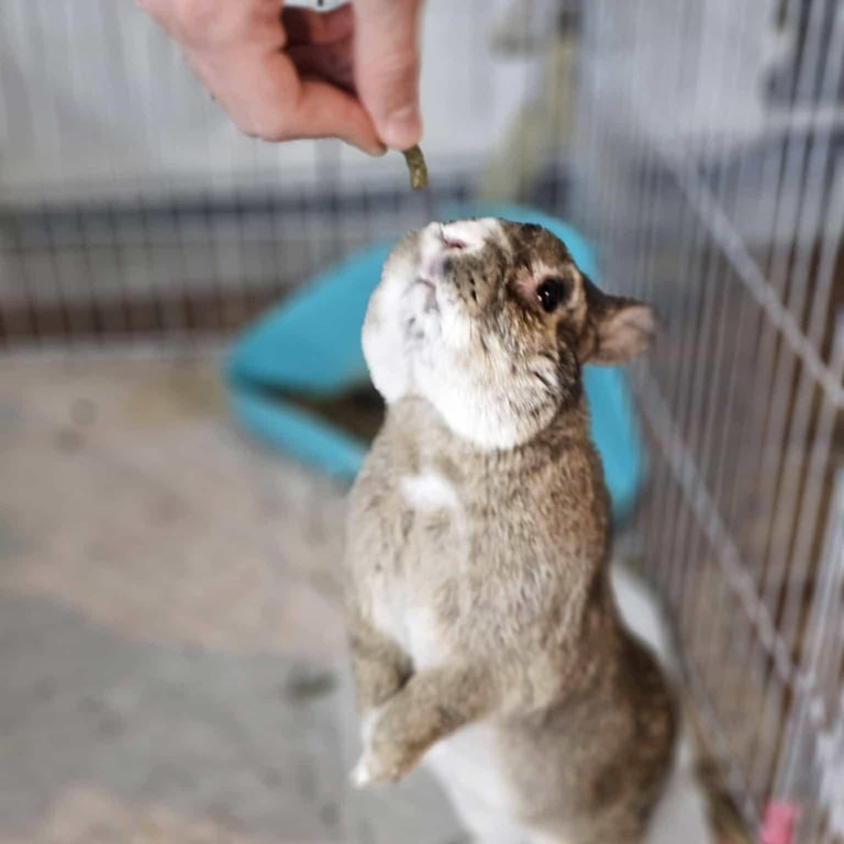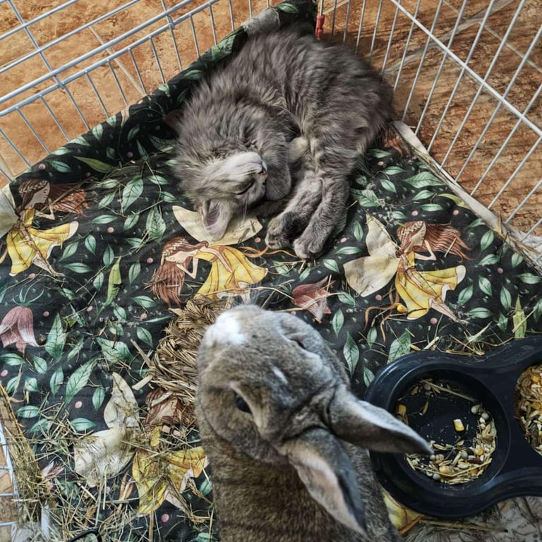 Tarp išgelbėtų gyvūnų, dar turime zuikį, kuris parvažiavo iš Šiaulių. Žmonės tiesiog, nenorėjo palikti mažuliuko zuikučio laiptinėje ir parvežė į Mažeikius.